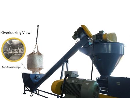 เครื่องรีไซเคิลขยะพลาสติก (ตัดด้วยหน้าแม่พิมพ์พร้อมการป้อนแบบบังคับ) เหมาะสำหรับการรีไซเคิลขยะผงพลาสติก เช่น HDPE, LDPE, LLDPE PP, PS เพื่อผลิตเม็ดพลาสติกคุณภาพสูง เม็ดพลาสติกเหล่านี้สามารถนำไปใช้ในการผลิตผลิตภัณฑ์พลาสติกใหม่ได้